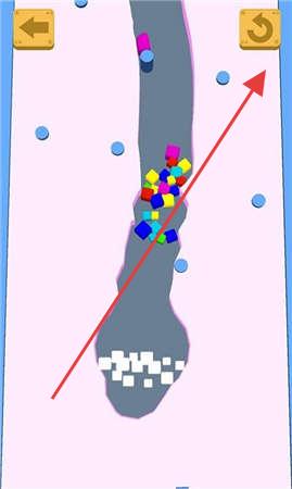 1、处于紫色通道场景时,通过点击或滑动屏幕的方式,指引彩色方块顺着箭头所指方向移动,以此收集相同颜色的方块。
