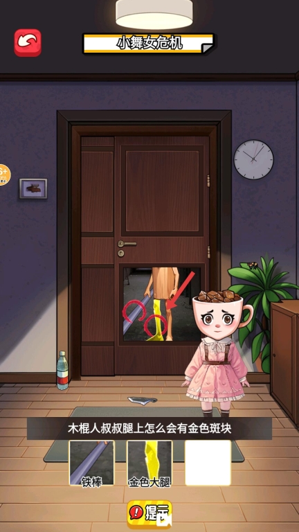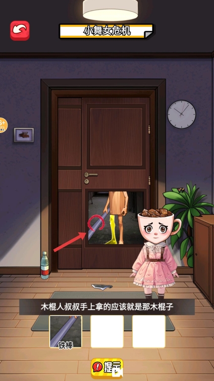 2、进入小舞女危机关卡后,留意门外木棍人叔叔手里拿着的东西,点击与之对应的铁棒,完成该物品的选定与确认操作,以此推动关卡进程。