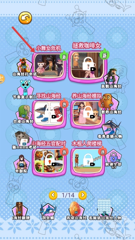1、在游戏选择界面,点击“小舞女危机”关卡选项,就能进入该关卡开启冒险挑战,探索其中的谜题与剧情。