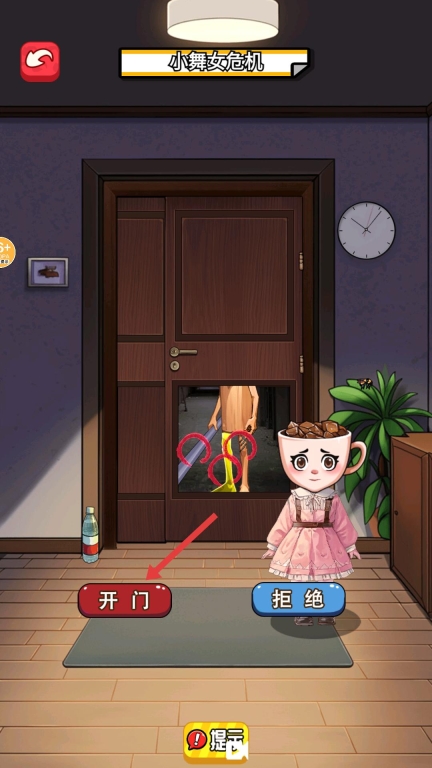 4、当界面上出现“开门”与“拒绝”这两个选项时,选择点击“开门”按钮,这样就能触发后续的关卡剧情,从而继续在小舞女危机关卡中开展冒险与探索活动。