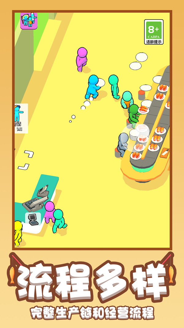 《开卷寿司安装》是一款能让你体验制作美食乐趣的模拟经营游戏。在这里,你将化身为寿司店的老板,开启一段充满趣味的经营旅程。每天你都会迎接形形色色的食客,根据他们的口味偏好制作出美味的寿司。你还可以解锁三文鱼、鳗鱼等多样食材,研发独具特色的新品。凭借你的商业智慧,努力打造一家人气爆棚的寿司名店,尽情感受经营带来的乐趣吧。