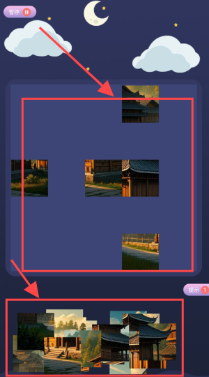 1、游戏智能辅助道具系统,能够巧妙提示碎片的位置关联,有效降低拼图的操作难度。