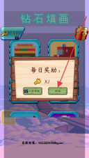 1、打开游戏钻石填画界面,点击“好的”按钮领取每日奖励,随后开启游戏的冒险挑战,进入游戏主场景。