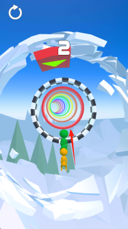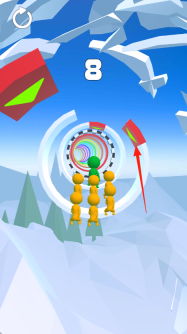 2、把角色叠放整齐,穿过2号彩色隧道,躲避旋转的障碍物,保持好造型,快速冲过隧道,尽量争取领先,解锁新的关卡。