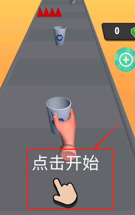 2、手捧盛有深色液体的杯子在跑道上移动,留意旁边障碍物的位置,通过手指左右拖动杯子来避开障碍物即可。