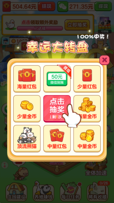 游戏界面上方设有养殖任务,完成这些任务就能获取抽奖机会,通过抽奖可随机赢取惊喜奖励。