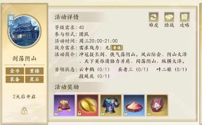 当各位少侠等级达到40级后,每周三20:00-21:00,便可与志同道合的伙伴组成12人队伍,前往大理NPC处对话,选择普通、困难、噩梦、地狱这四大不同难度的副本。大家可根据自身战力情况挑选合适难度挑战,稳扎稳打才能持续提升与进步!