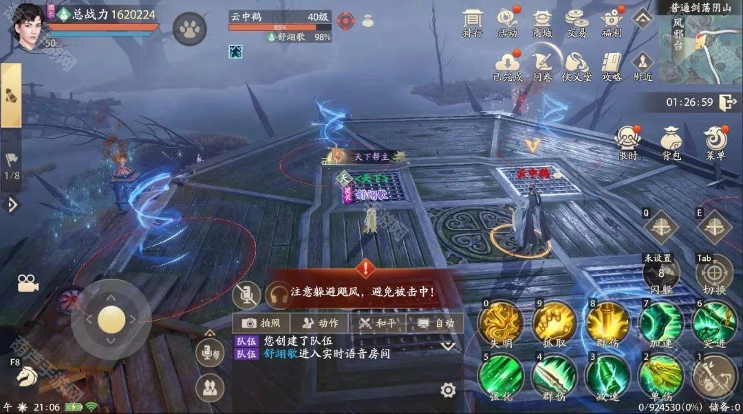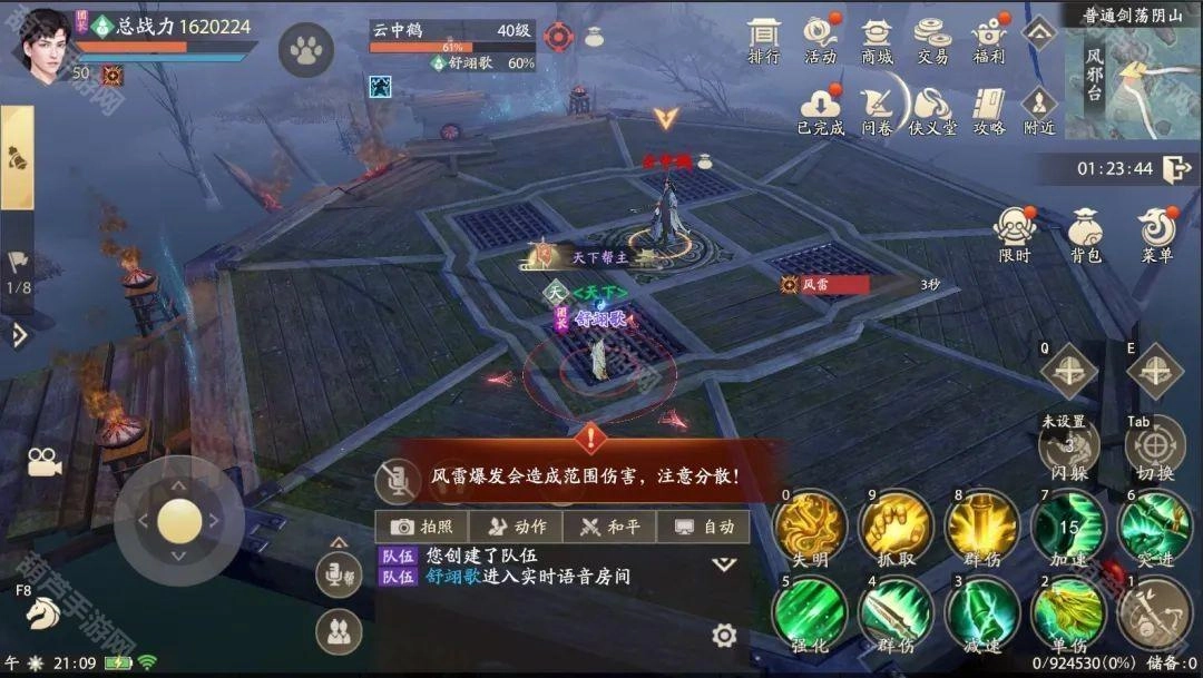 小誉提示:这个技能的覆盖范围很广,各位少侠务必持续朝着场地中央移动。