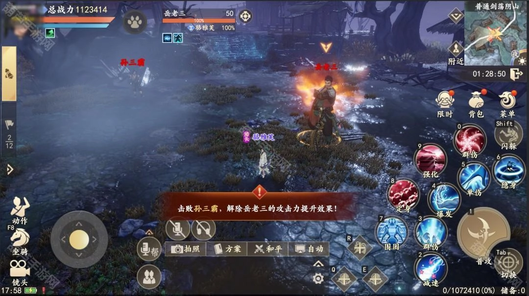 岳老三召唤孙三霸加入战斗,与此同时自身攻击力得到大幅提升,这种提升状态会一直持续到孙三霸被击败为止。