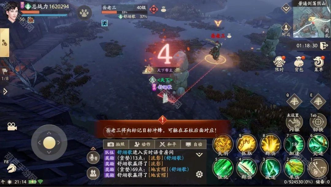 标记一名玩家,5秒后向该玩家发起冲锋,对冲锋路径上的目标造成高额伤害;若冲锋过程中撞击到石柱,则冲锋立即停止,且岳老三会进入易伤状态。