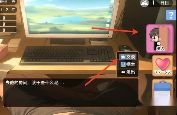 6、点击右边的侵入按钮,选择交谈或探索作出选择;