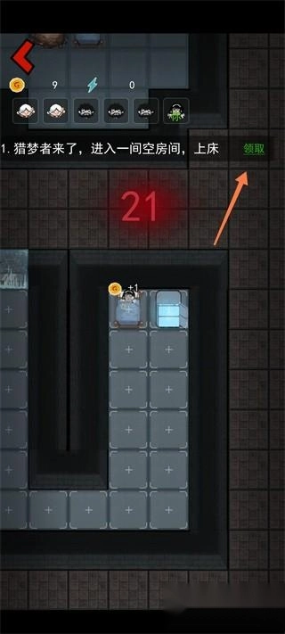 2、进入房间后马上上床,系统会自动生产金币,完成“上床”任务即可领取奖励。