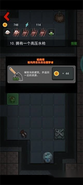 3、后续可以拆除旧炮台,替换成高压水枪、蛙炮塔这类更具威力的防御设施,以此对猎梦者形成持续压制。