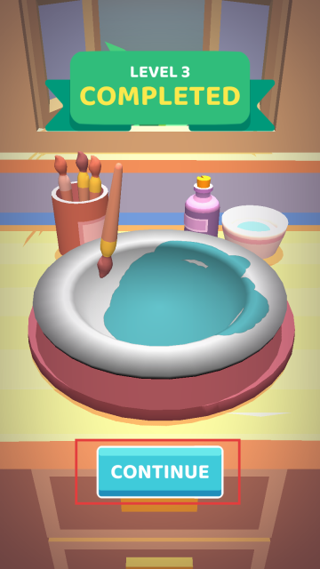 3、这一关的涂色完成后,点击【CONTINUE】,接下来就发挥你的艺术创造力,去设计新的艺术盘子吧。