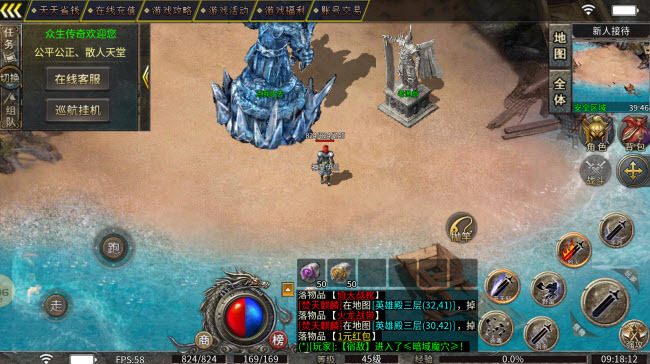3、开启自动泡点功能,前往血石仙子处合成魔血石(推荐合成至5级),通过爵位捐献系统捐赠10张灵符,即可进入地图挑战怪物!