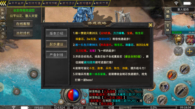 2、仅需98元即可获得超值唯一礼包,内含热血面巾、转生石、四象石、BOSS头颅刀刀红毒与宝箱,助你开启飞一般的起步体验!