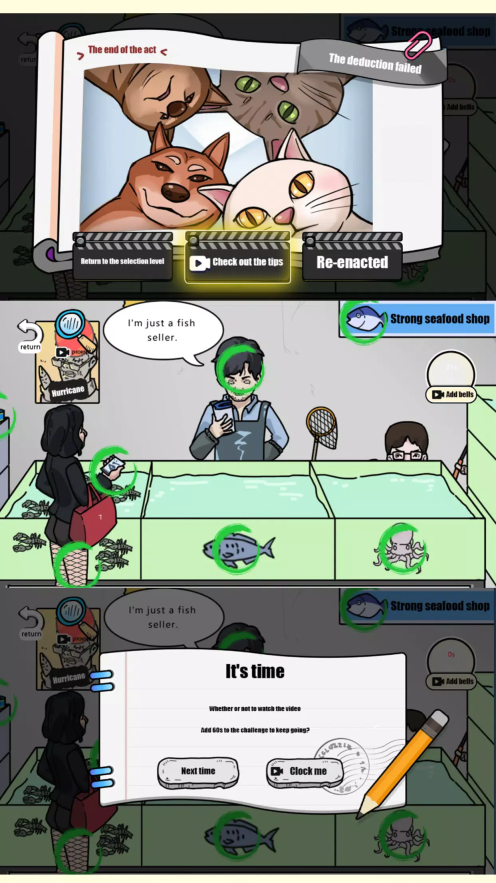 3. 玩家既能通过和顾客交谈,知晓他们的需求与故事;也能通过查看鱼缸,发现隐藏的物品。