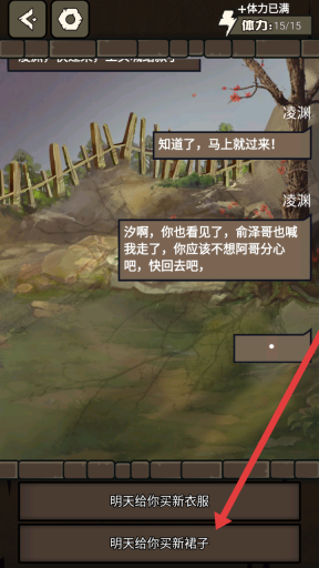 2、在和剧情人物对话选择的环节,要依据之前的对话内容来做选择,这里选“明天给你买新裙子”,以此回应角色的诉求。