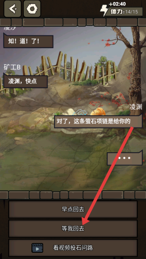 3、在后续的剧情对话里,依然要依据之前的对话内容来做选择,这里选择“等我回去”这句话来回复对方。