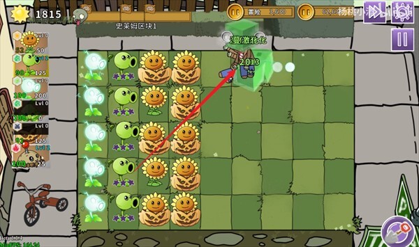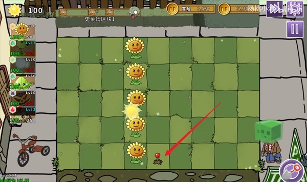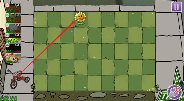 1、玩家进入关卡后,第一步要种向日葵来产出阳光,只有阳光充足了,才能种植各类植物。