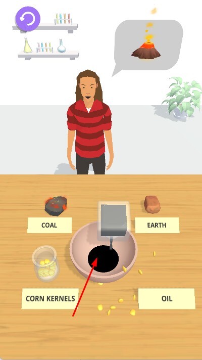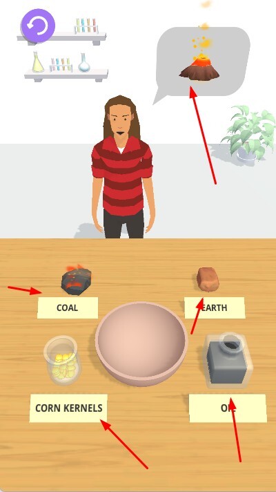 1、启动游戏后,在实验室场景里,按照角色给出的提示,挑选桌上的材料,把它们放进中间的大碗中。