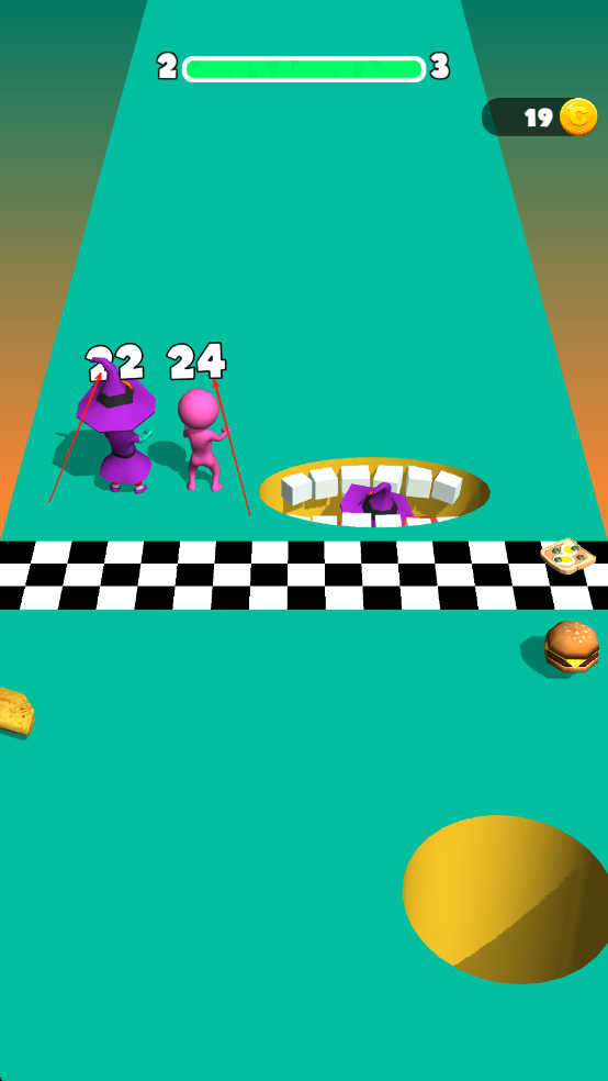 2、碰撞应对策略:提前预判前方小人的移动路线,及时变道以避开碰撞;一旦发生碰撞,需立刻折返去捡掉落的食物,借助剩余的路程来弥补高度上的损失。