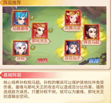 1、幼鳞姜维、哪吒天王、孙权、凤舞月英、锦衣马超、百花仙子