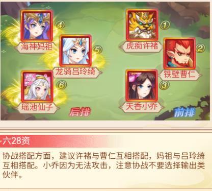5、海神妈祖、龙骑吕玲绮、瑶池仙子、虎痴许褚、天香小乔、铁壁曹仁