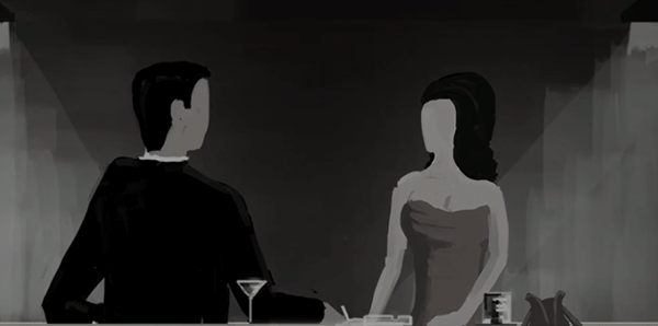 6、男主苏醒后,发现自己躺在马路中央,身上仅着一条大裤衩。图片右下角的垃圾桶后方,隐约可见一个躺着的裸男身影。他并未选择回家添衣——毕竟,一个被悲伤彻底淹没的人,早已无暇顾及这些身外之物。于是,他再次走向了酒吧。步入酒吧后,一张画报映入眼帘。指尖触碰画报的瞬间,记忆如潮水般涌来:那是他与女主初遇的场景。当时,女主正想抽烟,却找不到打火机,而肖恩,我们的男主,绅士地为她点燃了烟。缘分的种子,便在那一刻悄然萌发,两人就此走到了一起。
