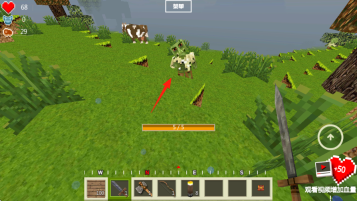 3、点击快捷栏里的剑,靠近僵尸发起攻击,借助草地、坡地等地形与僵尸周旋,击败它们来获取资源,以此维持生存。