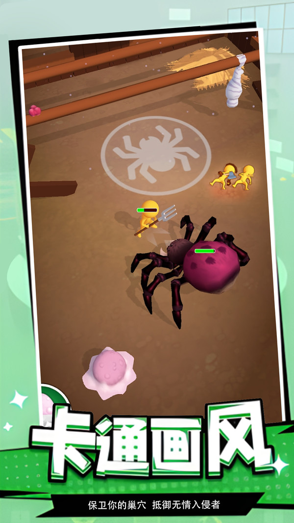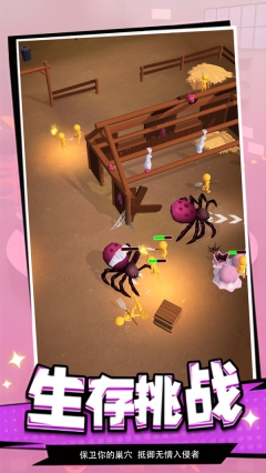 《迷失冒险岛》是一款充满惊险挑战的游戏,玩家将化身为巨型蜘蛛守护家园,指挥蜘蛛女王抵御人类入侵者——用丝茧将他们包裹并拖回巢穴谷仓,以此滋养后代。在卡通风格的世界中,你能体验到刺激的冲突与生存挑战,内容极为丰富:从守护巢穴到壮大蜘蛛军团,每一步都紧张感拉满又趣味十足。