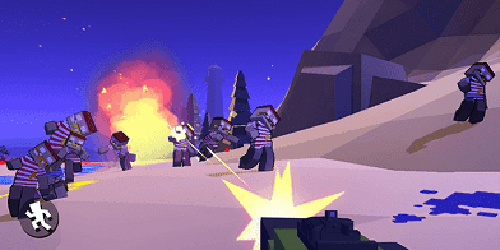 3、拾取多种不同类型的枪械武器,你能够自由射击以完成各类冒险挑战。