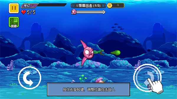 《怪兽之王》是一款魔性十足的冒险游戏,玩家将操控一只仅长着三根触手的章鱼深入深海展开冒险,目标是消灭视野内所有海洋生物。随着等级提升,章鱼的触手会发生变异,解锁各种意想不到的形态;你可以通过转动按钮调整触手方向,以此向敌人发起攻击。当等级达到一定高度时,还能增加触手的数量——努力进化为真正的怪兽之王,去夺取属于你的一切吧!此外,游戏的画面制作也颇为用心,复古的像素风格十分吸引人。
