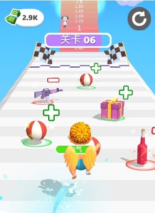 1、借助手势操作来控制角色完成奔跑、跳跃动作,躲避途中的障碍物,并收集爱心类道具。