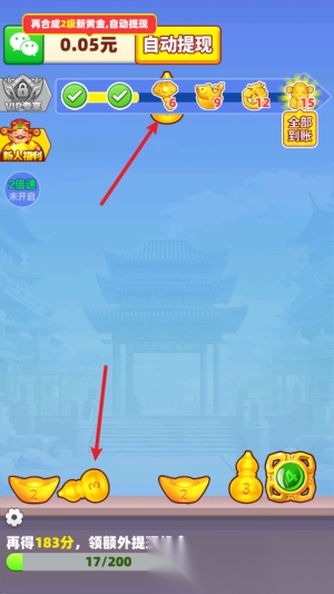 福运亨通游戏沿用经典合成玩法,你能在游戏里不受任何规则限制地自由合成各类黄金,让地图上的黄金经你之手变得身价倍增,完成等级与价值的进阶。随着关卡逐步解锁,你积累的财富会越来越多,慢慢成为地图中的财富大亨,实现暴富躺平的发财梦想。