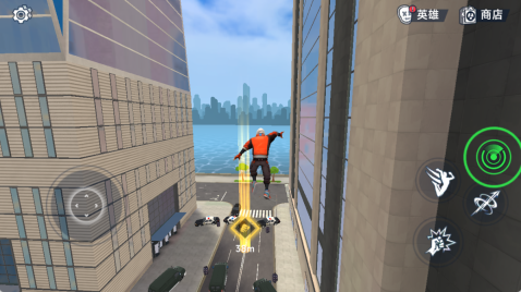 1、进入开放城市区域后,可借助操控蛛丝来完成摆荡、攀爬等移动动作。