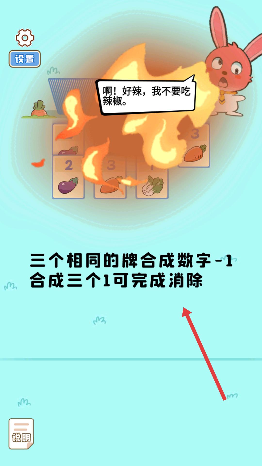 3、当出现三张相同数字的牌时,它们会合并成数字减一的牌;要是合成的是三张数字为1的牌,就能直接完成消除。