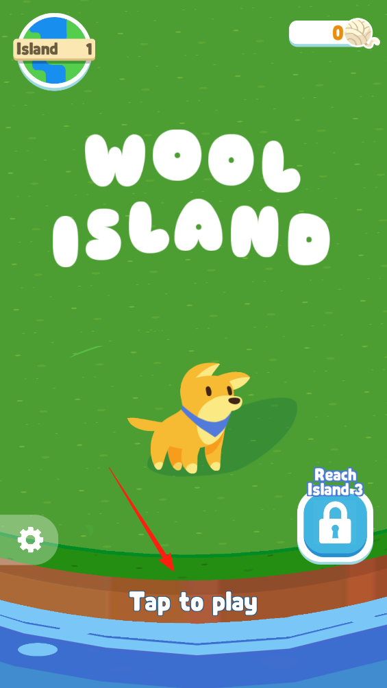1、点击“Tap to play”即可开启冒险之旅,系着蓝色围巾的小黄狗将在岛屿上展开探索,右上角会显示已收集的羊毛币数量,积累足够数量的羊毛币就能解锁前往岛屿3的新区域,那里藏有特别惊喜。