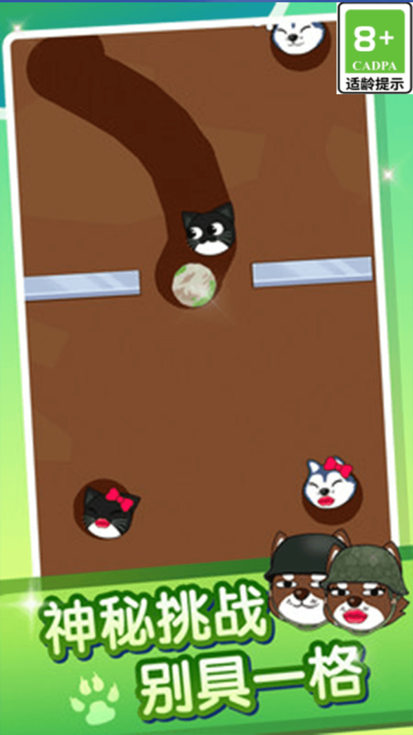 1、玩家挖开泥土,为可爱的狗狗们找到正确的配对,在完成挑战的同时,也能收获成功配对带来的满满成就感。