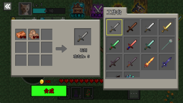 4. 进入工作台界面,你可以在此开展武器锻造工作,赶紧收集必要的材料来提升武器等级吧!