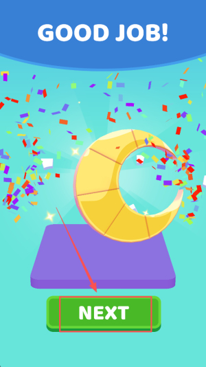 4、领取奖励:当界面显示“GOODJOB! NEXT”时,点击“NEXT”按钮继续挑战。