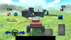 2、操控卡车(通过方向盘与踏板),在草地路面行驶,避开途中障碍,寻找由“箭头”指示的目标点位。