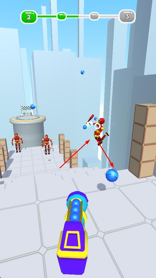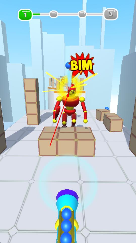 1、操控发射器射击敌人:玩家通过手中的小球发射器或火炮,对准前方持续逼近的机械人类发起攻击,凭借精准的打击将它们击倒,以此阻止这些敌人靠近自己的防线。