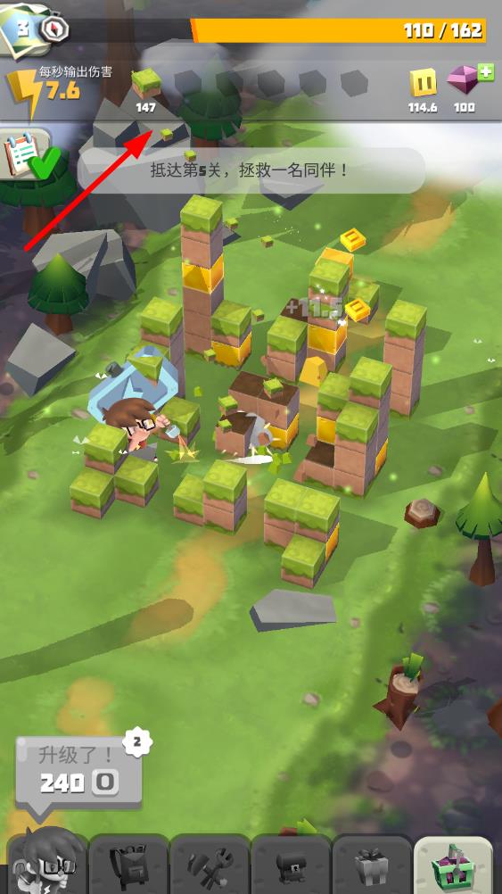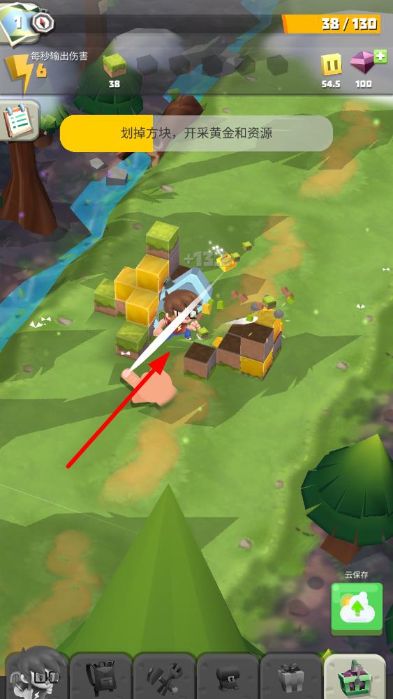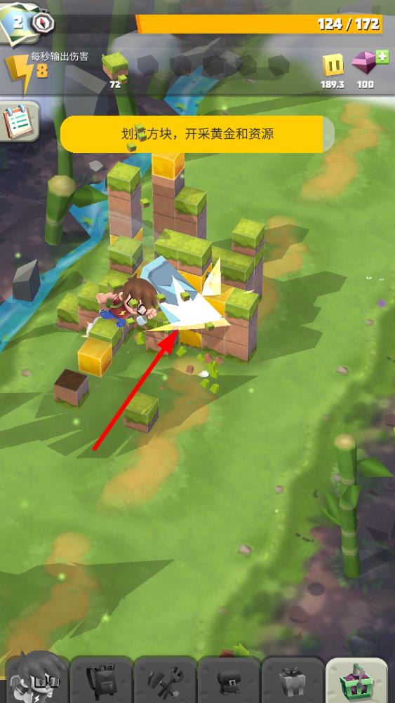 1、进入游戏后先探索初始区域,点击屏幕击碎第一个方块,挖出道具来熟悉操作,开启这段3D方块世界的探索与消除旅程。