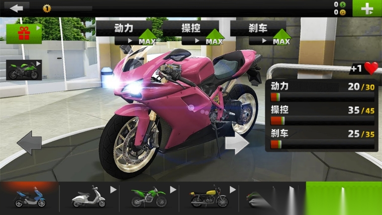 3. 游戏里能通过参与比赛获取金币,用这些金币可以解锁各式各样的摩托车。每一款摩托车在速度快慢、操控灵活度以及行驶稳定性方面都各有不同。
