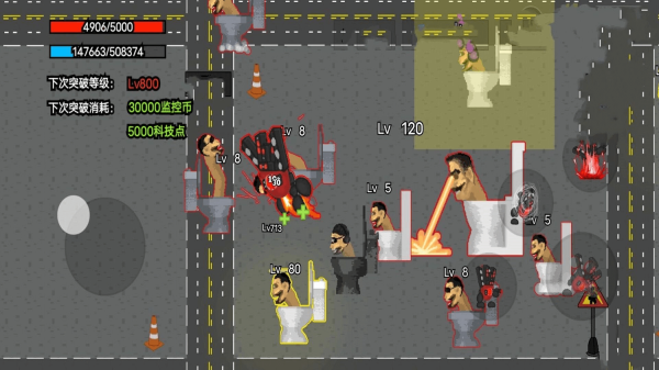 1、和马桶人展开战斗,通过击败它们来获取经验值,以此提升监控人的等级,使你变得更加强大。