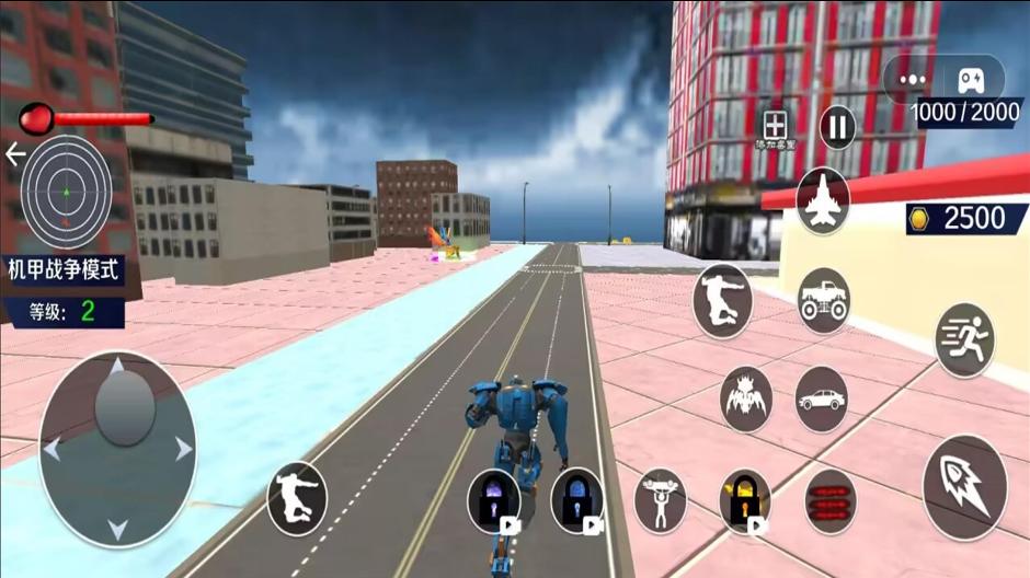 1、操控已解除限制的机器人进行战斗,不同机型具备专属的技能招式和机甲变身形态。